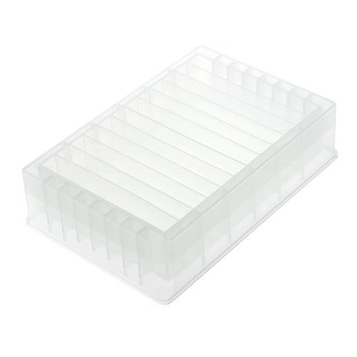 Reagent Reservoirs are designed to assist in repetitive or robotic liquid transfer.Pyramid design promotes funneling of liquid to maximize reagent recovery by pipet tips.Low profile is ideal for small volume robotic tips.Polypropylene offers a low binding surface to prevent samples from sticking to the side during elution, and is chemically inert for combinatorial chemistry applications.Autoclavable.Maximum Volume-195 ml.
