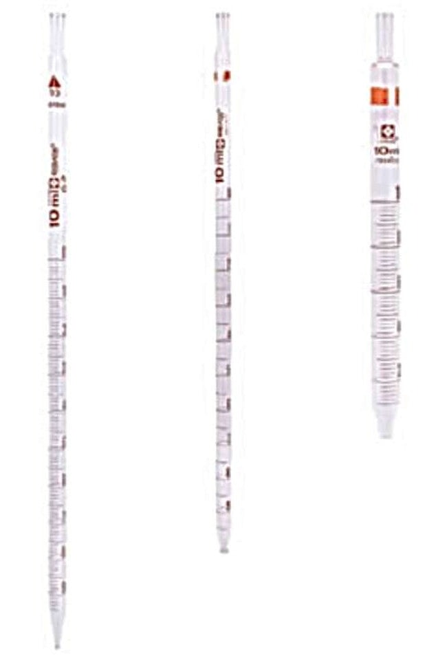 Serological pipettes are made out of high-quality borosilicate glass. They also have graduation markings and color-coded bands that are permanently enameled to the glass which allows for quick identification of different volume ranges.