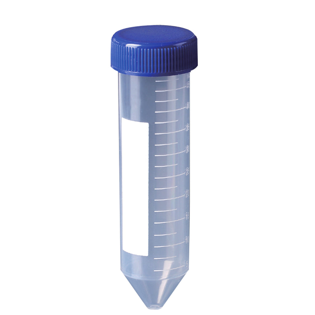 Conical centrifuge tubes are made of premium polypropylene for clarity and centrifugal strength. Tubes and caps may be frozen at temperatures as low as -86˚C. The maximum centrifugal force is 12,000xg for the 15ml tubes and 15,000xg for the 50 ml tubes*. Caps have a flat top surface for easy marking and labeling. Cat. No. C2605 features a ‘skirted’ bottom that allows the tube to stand upright without a separate test tube rack.