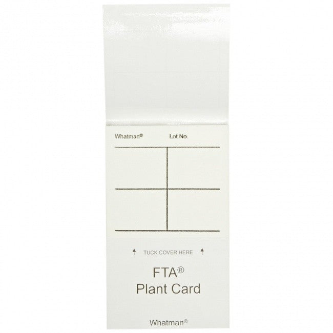 Plant friendly FTA Card, in a Classic Card format. Features a laminated flap that allows you to vigorously crush the plant sample into the FTA matrix without damaging the FTA Card.