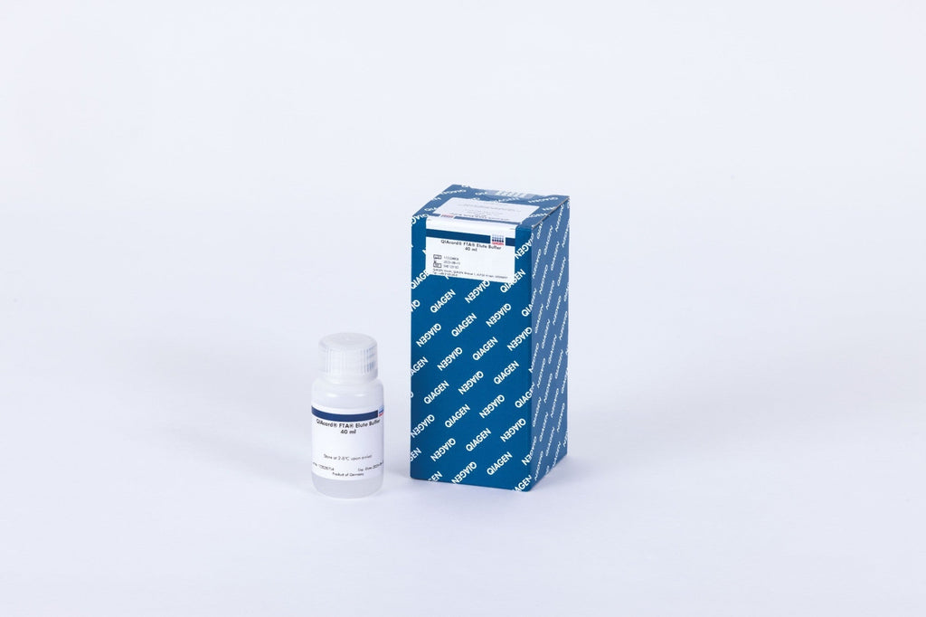 The QIAcard FTA Elute Buffer allows for the rapid elution of nucleic acids from QIAcard FTA Elute formats. Stored purified DNA bound to the matrix is eluted in 30 minutes. Nucleic acids from blood or saliva samples can be eluted in less than 40 minutes. The QIAcard FTA Elute Buffer simplifies the elution protocol and protects the nucleic acids from degradation. Moreover, the buffer is designed for combined treatment with Proteinase K and QIAshredder.